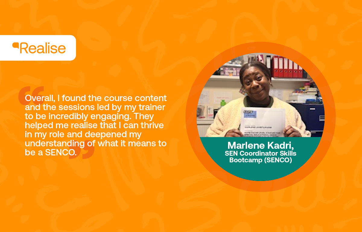 After completing the SEN Coordinator Skills Bootcamp (SENCO), Marlene Kadri has gained valuable insight and confidence in their role supporting children with special needs. While every session provided useful knowledge, there was one in particular that had a lasting impact.