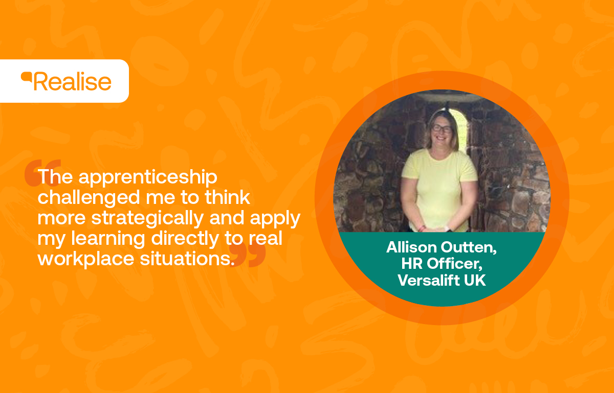 Allison Outten joined Versalift UK to strengthen her strategic HR skills and prepare for career progression. She chose the Level 5 People Professional Apprenticeship to gain knowledge, practical experience, and professional credibility to move toward an HR Manager role.